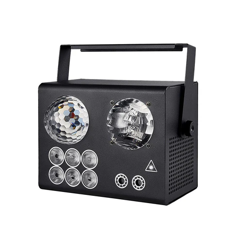 The 4-in-1 RGBW Laser DJ Strobe Light creates dynamic lighting effects for parties, KTV, discos, and stage performances. Featuring a dyed water pattern effect with high-brightness LED output, it delivers vibrant RGBW colors and supports dimming from 0–100% for customized ambiance. Multiple control modes including DMX512, master-slave, sound-activated, and auto operation provide flexible lighting solutions for any event.