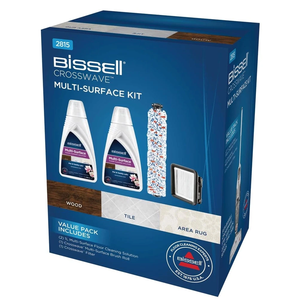 CrossWave Multi-Surface Kit (Optional): Includes two 1L multi-surface cleaning solutions, an extra brush roll, and filter for enhanced cleaning results and fresh spring scent.
