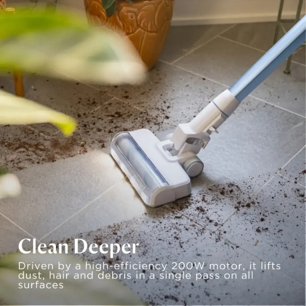 The Bissell Power Clean Furguard Cordless Stick Vacuum Cleaner, 4316E (200 W) makes cleaning effortless, efficient, and versatile. Engineered for pet owners and busy households, it combines powerful suction, advanced LED lighting, and a tangle-free brush roll to tackle hair, dust, and dirt on all surfaces.
