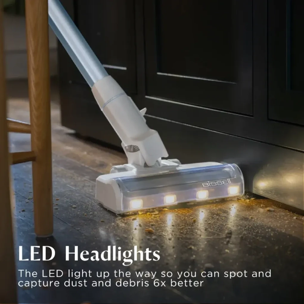 LED headlights illuminate hidden debris for a thorough clean in low-light areas.