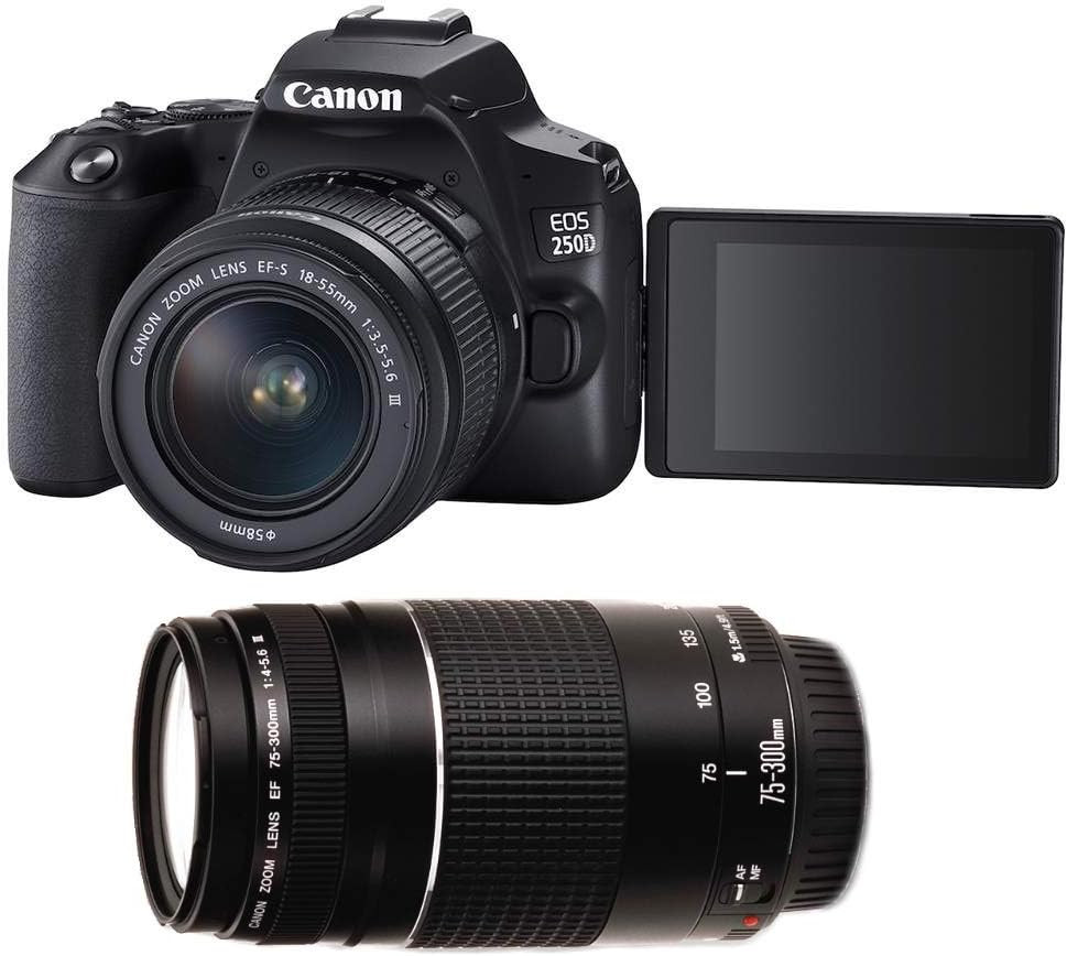 This versatile camera kit includes the Canon EF-S 18-55mm Lens for everyday photography and the Canon EF 75-300mm Lens for capturing distant subjects such as wildlife, sports, and landscapes. Together, these lenses provide a wide focal range, giving photographers flexibility in different shooting situations.