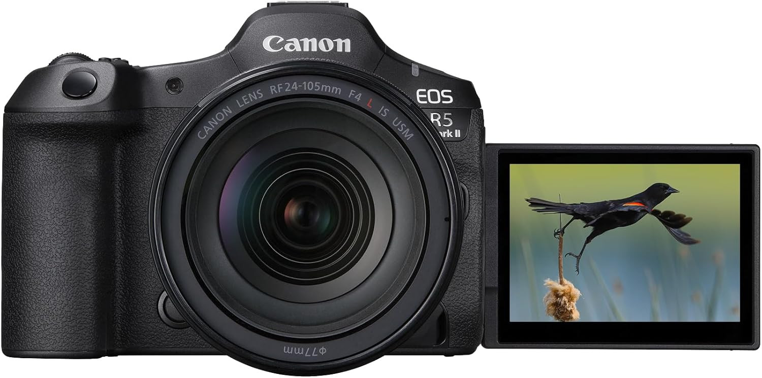 Combined with the versatile RF 24-105mm zoom lens, the EOS R5 Mark II provides a flexible focal range ideal for portraits, landscapes, travel photography, and professional video production.