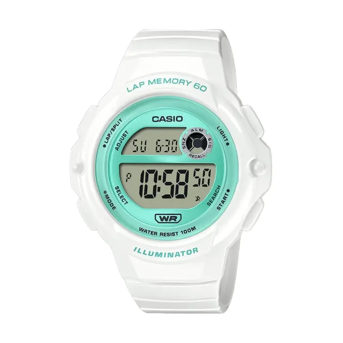 Designed for performance and durability, this 100-meter water-resistant digital sports watch is built to handle active lifestyles and everyday wear. Featuring a lightweight yet durable resin case and resin band, it fits wrist sizes from 145–215 mm, providing comfort and flexibility throughout the day. The resin glass enhances impact resistance while maintaining clear visibility.