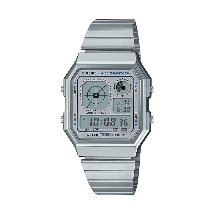 Stay ahead of time across the globe with this advanced chrome plated digital world time watch. Built with a durable resin and chrome plated case and paired with a stainless steel band featuring an adjustable clasp, it offers a secure and comfortable fit for wrist sizes ranging from 150–205 mm. The lightweight resin glass enhances durability while maintaining everyday comfort.