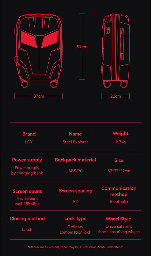 The CRONY Steel Explorer Carbon Fiber LED Display Backpack combines smart technology with practical travel convenience. Designed for both personal and advertising use, this innovative trolley luggage features an integrated LED display that allows customizable patterns and messages, making it ideal for promotions, events, or unique personal style.
