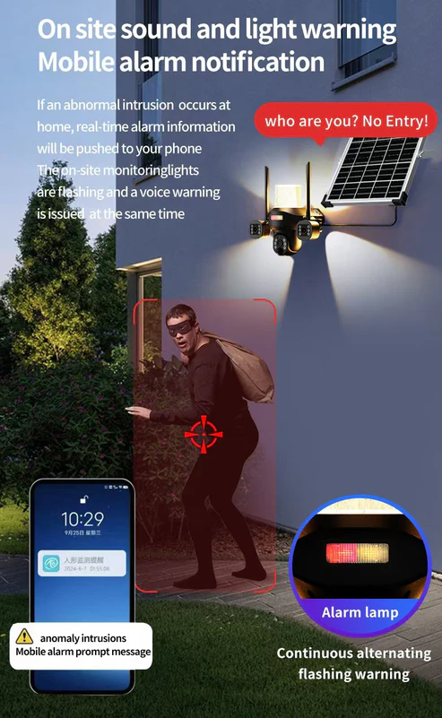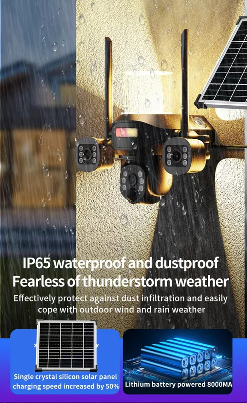 Equipped with motion and human detection, two-way audio, and PTZ rotation (345° horizontal, 90° vertical), the TB02-4G-4K allows proactive security measures with smart alerts, video recording, and sound/light alarms. Powered by a 12,000mAh battery and monocrystalline solar panel, it ensures sustainable, maintenance-free operation. The durable ABS plastic body and IP65 waterproof rating make it suitable for outdoor installation in varying weather conditions.