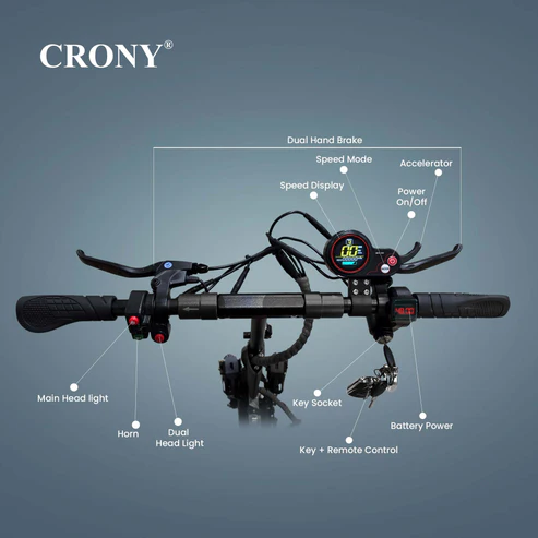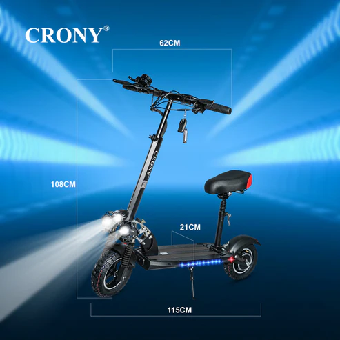 The CRONY V10 Pro Electric Scooter combines powerful performance and smart design for both adults and young riders. Equipped with a 1200W motor, it delivers smooth acceleration and a top speed of up to 40 km/h, making it ideal for daily commuting or off-road adventures.