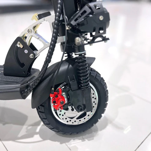 Built with a durable aluminum alloy frame and fitted with a 36V 12Ah battery, this scooter offers a travel range of up to 40 km per charge. Its dual disc brakes and front-rear suspension ensure stability and safety even on uneven terrain. The foldable frame and removable seat make it easy to transport and store, while triple LED headlamps enhance night visibility.