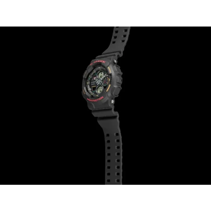 Additional features include a countdown timer with auto-repeat, five daily alarms with snooze, hourly time signal, and full auto-calendar up to the year 2099. Combining bold design with powerful functionality, this watch delivers reliable performance and sporty style for active lifestyles.