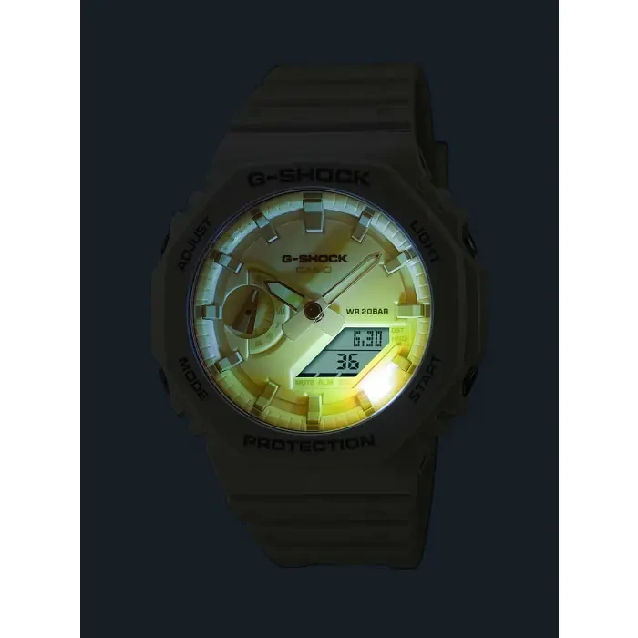 The hybrid display combines analog hands with a digital screen, enhanced by a hand shift feature for clear visibility. World time covers 31 time zones and 48 cities, while the precision 1/100-second stopwatch and versatile 24-hour countdown timer help track workouts and daily tasks. Five daily alarms and hourly time signals keep your schedule organized.