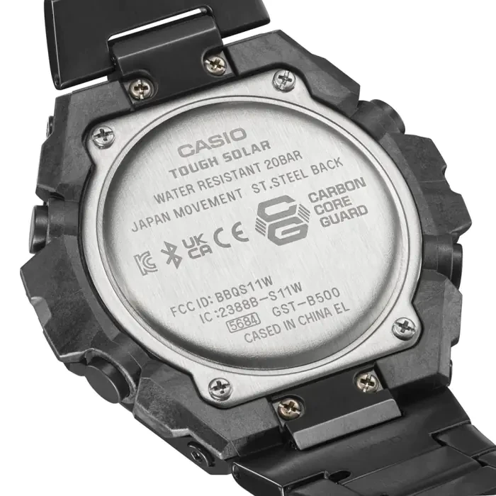 Engineered for strength, precision, and advanced connectivity, this solar-powered analog digital sports watch combines rugged durability with modern smart features. Built with a Carbon Core Guard structure, resin and stainless steel case, and a black ion-plated stainless steel band with one-touch 3-fold clasp, it delivers exceptional toughness and a bold, professional look. With 200-meter water resistance and shock-resistant construction, it’s ideal for outdoor adventures, sports, travel, and everyday wear.