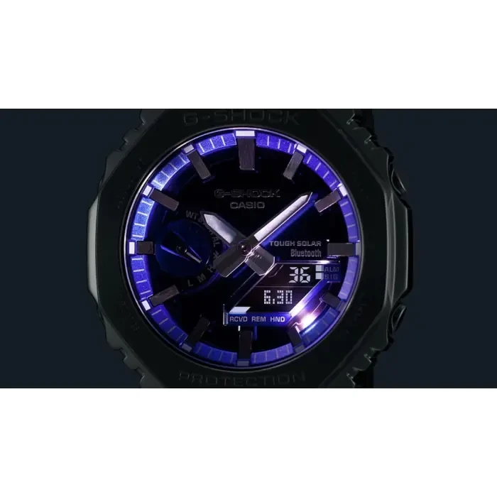 Powered by Tough Solar technology, it ensures long-lasting performance while Bluetooth smartphone connectivity enables automatic time adjustment, reminders, phone finder, and easy world-time management across 38 time zones. The hand shift feature provides a clear view of the digital display when needed.