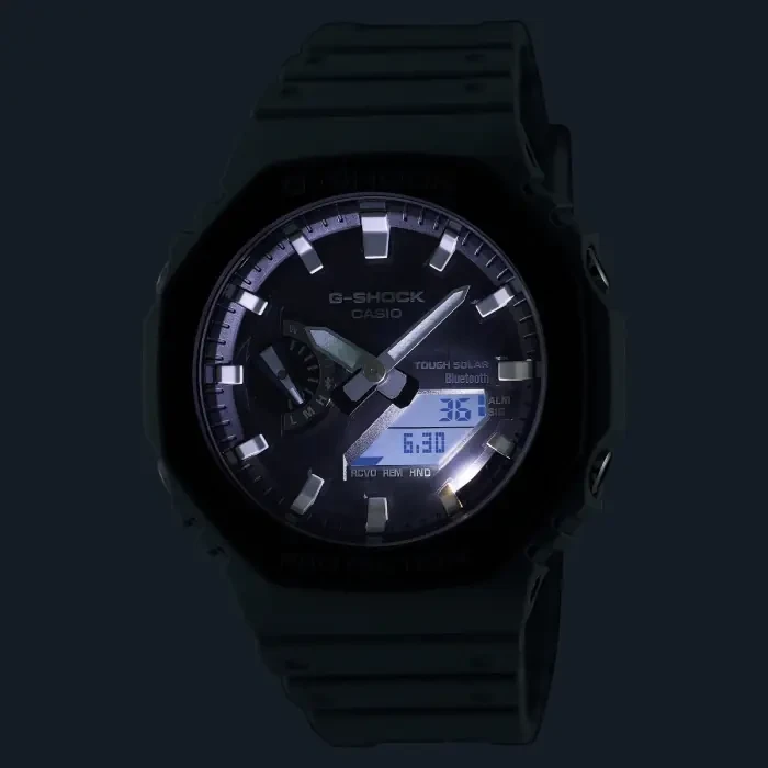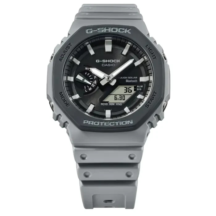 Experience advanced performance and smart connectivity with this Casio G-Shock Bluetooth Tough Solar watch, engineered with a Carbon Core Guard structure and durable bio-based resin construction. Designed for active lifestyles, it offers 200-meter water resistance, shock resistance, and solar-powered operation for reliable long-term use.