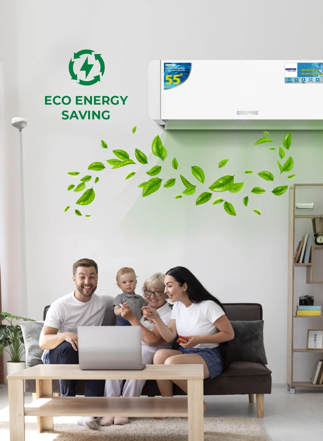 • 18500 BTU cooling capacity for quick and effective cooling• 4D air flow for even cooling throughout the room• Wi-Fi control for remote operation through a smartphone app• LED display for easy monitoring and control• Self-cleaning function for simple maintenance• Golden Fin protection to stop corrosion and increase durability• Modern and stylish design that fits any space• Energy-efficient and quiet operationSpecifications:• Brand: Geepas• Type: Smart Split Air Conditioner• Capacity: 1.5 Ton / 18500 BTU• Cooling Modes: Fast Cooling, Auto, Fan, Sleep• Control: Wi-Fi & LED Display• Airflow: 4D Air Flow• Safety Features: Self-Cleaning, Golden Fin Protection• Material: Metal & Plastic Body• Color: White• Suitable For: Homes, Offices, Medium to Large Rooms