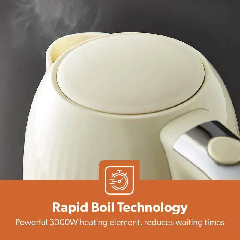 The Geepas GK38068UK-CR Fluted Jug Kettle brings together good looks and strong performance, making it a great choice for any modern kitchen. It has a 1.7-litre capacity, which is perfect for boiling water, milk, or making tea and coffee for the whole family. The 360-degree rotating cordless base makes it easy to handle and place wherever you need. It also has safety features like boil-dry protection and an automatic shut-off to ensure safe use every time. The removable filter makes cleaning simple, and the stylish cream finish adds a touch of elegance to everyday use.