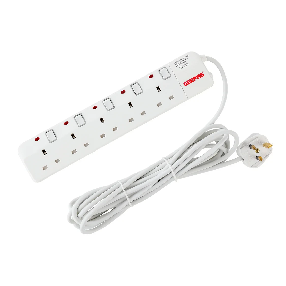 - Allows you to plug in up to five devices at once- Features a long, durable 5-meter cable for flexible use- Made with heavy-duty materials for long-lasting performance- Provides safe and dependable power to your devices- Has a small and simple design that’s easy to use- Works well in homes, offices, and other workspaces- Simple to use and keep in good condition- Perfect for powering several electronics simultaneouslySpecifications:- Brand: Geepas- Type: 5-Way Extension Socket- Number of Sockets: 5- Cord Length: 5 meters- Build Quality: Durable Heavy-Duty Construction- Use: Home, Office & Electronic Devices