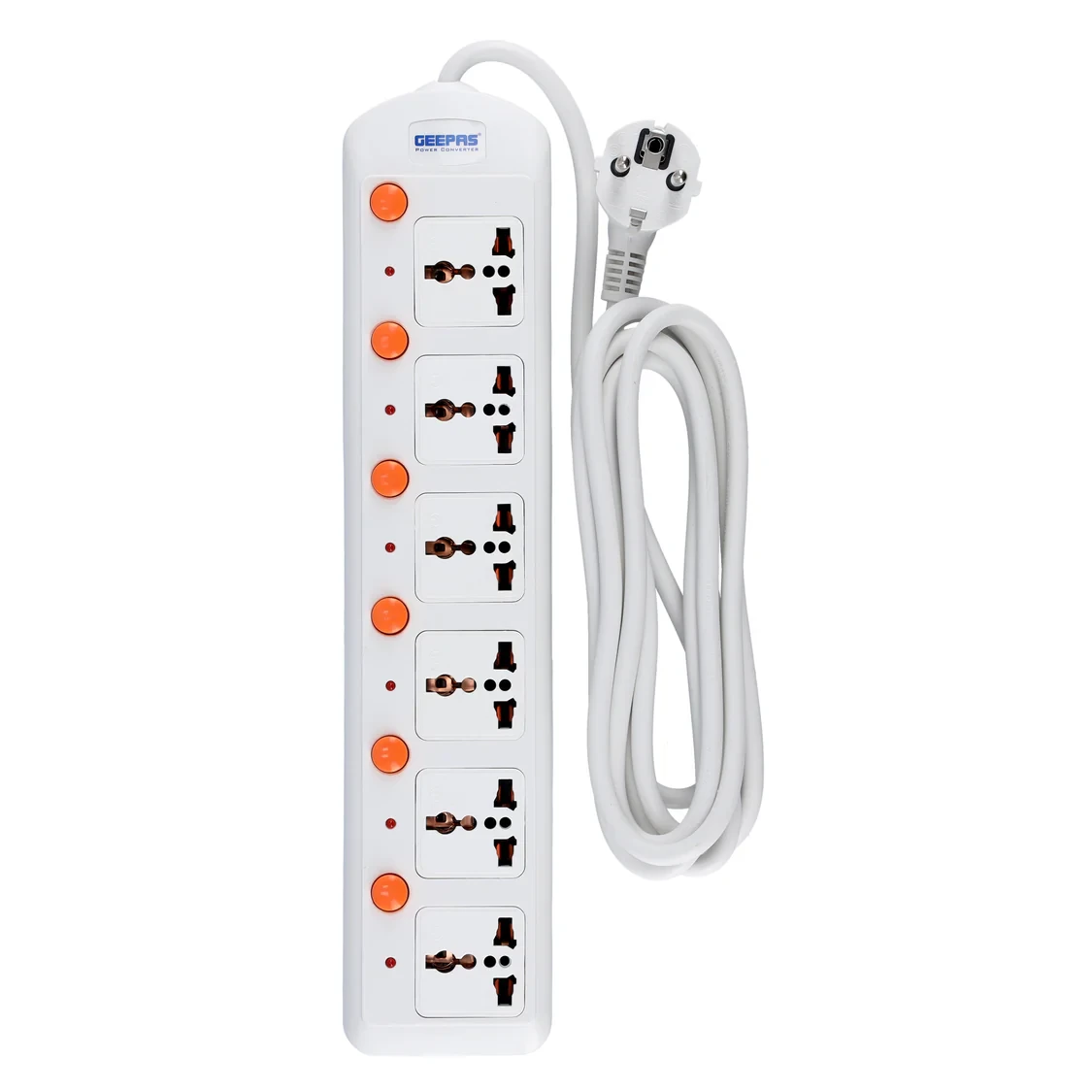 • A 6-way extension board that lets you connect multiple devices• Each socket has its own on/off switch for precise control• Comes with a VDE certified plug for added safety• Built with a durable cable that lasts a long time• Designed for safe and dependable power delivery• Compact and simple to use• Perfect for use in homes, offices, and workstations• Made with high-quality materials for long-term performanceSpecifications:• Brand: Geepas• Type: 6-Way Extension Board• Number of Sockets: 6• Switches: Individual On/Off• Plug Type: VDE Certified• Cable: Durable & Long-Lasting• Application: Home, Office & Electronic Devices• Build: Safe, Reliable & High-Quality Construction