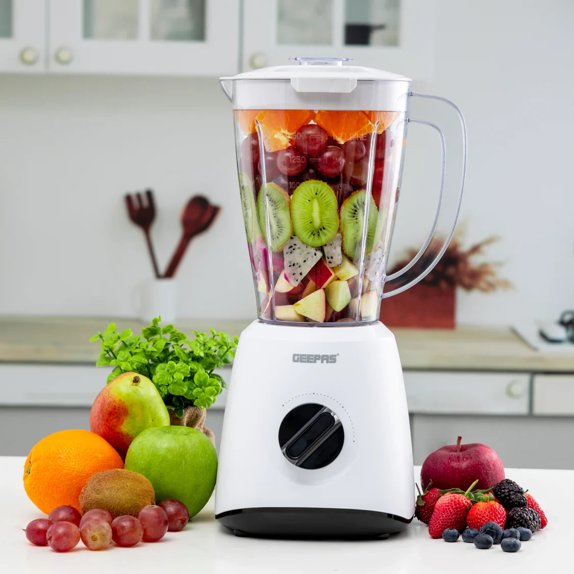 The Geepas Blender GSB9894N is made to blend smoothly and efficiently for everyday use in the kitchen. It has a strong 400W motor that makes it easy to blend fruits, veggies, ice, and other ingredients into smoothies, soups, and sauces. The 1.5L glass jar is strong and can hold enough for family meals, and the sharp stainless steel blades help make blending fast and even. With two speed settings and a pulse function, you can adjust how thick or smooth your mix turns out. The solid base and compact, modern look make it a dependable and stylish choice for any kitchen.