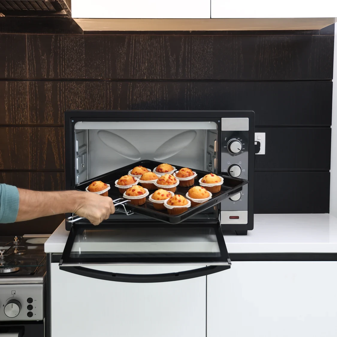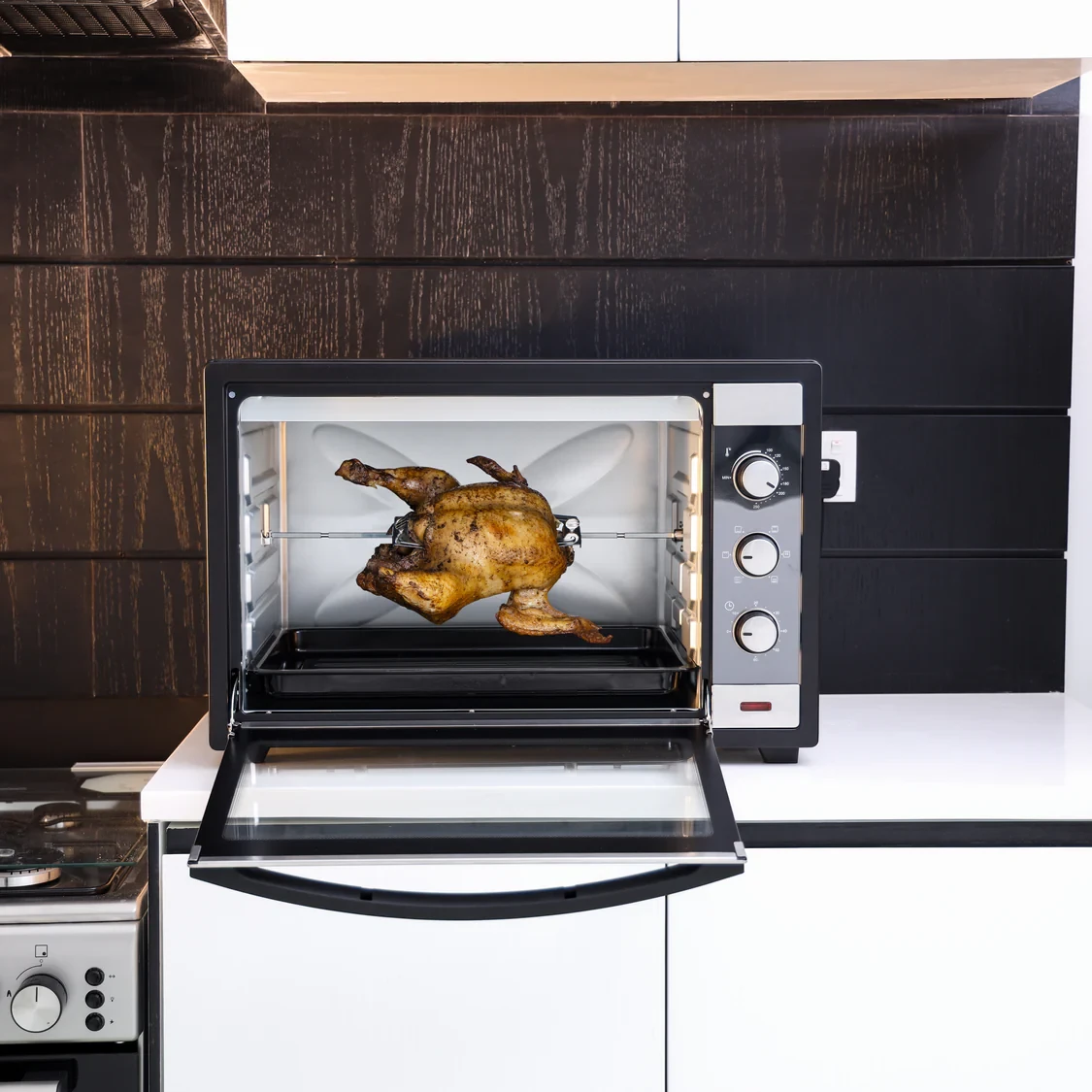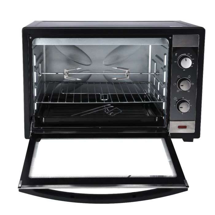 - Large 60L capacity ideal for family meals and hosting gatherings- 2000W powerful performance for fast and even heating- Rotisserie function for perfectly roasted chicken and meats- Adjustable temperature control for precise cooking versatility- 60-minute timer with a bell to remind you when cooking is done- Transparent viewing window to easily check on your food- Multi-function design for baking, grilling, toasting, and roasting- Durable stainless-steel body for long-lasting use- Easy-to-clean interior with removable parts- Compact and efficient design that works well in any kitchenSpecifications:- Brand: Geepas- Model: GO4459- Type: Electric Oven- Capacity: 60L- Power: 2000W- Functions: Bake, Grill, Toast, Roast, Rotisserie- Temperature Control: Adjustable- Timer: 60 Minutes with Bell Alert- Door Type: Transparent Glass Door- Body Material: Stainless Steel- Accessories: Baking Tray, Grill Rack, Rotisserie Set- Color: Silver/Black- Installation: Countertop