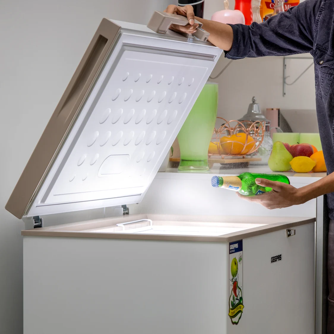 The Geepas GCF1706WAH casket Freezer is designed for effective and dependable storehouse of frozen foods. With a commodious 170L capacity and energy-effective 115W cooling system, it maintains temperatures as low as-18 °C for optimal preservation. Equipped with an malleable thermostat, LED light for interior visibility, and a secure cinch for safety, this deep freezer combines convenience, continuity, and energy effectiveness. Perfect for homes, services, and small marketable spaces.