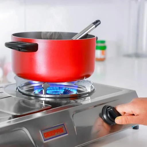The Geepas GK6856 Stainless Steel Gas Cooker is designed for strong performance, long-lasting use, and efficient energy use. It comes with two heavy-duty cast iron burners that provide a total power of 5.6kW, making sure your food cooks quickly and evenly. The automatic ignition system makes it easy and safe to light the flames without any hassle. The cooker has a stainless steel body that won’t rust and is simple to clean. It also uses less gas and saves up to 60% of energy, making it great for both home and professional kitchens.