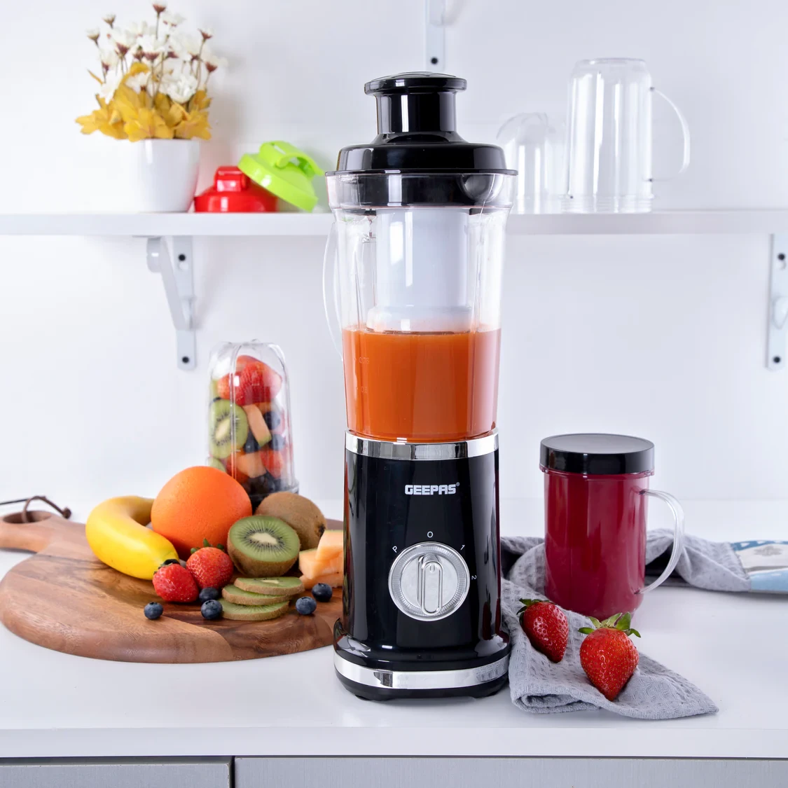The Geepas GSB44018UK Multi-Functional Blender is a great tool for the kitchen that can do many things like blending, grinding, and crushing ice. It has a strong motor that is 380W, which makes it work well for making smoothies, sauces, and purees. It has two speed settings and a pulse button to help you get the right texture for any recipe. The blender uses sturdy stainless steel blades that make it easy to blend quickly and evenly. There’s also an LED light built in that helps you see what you're doing while it’s running. It also has an overheating protection system to keep it safe and make it last longer. This blender is perfect for daily use and adds power, style, and convenience to any kitchen.