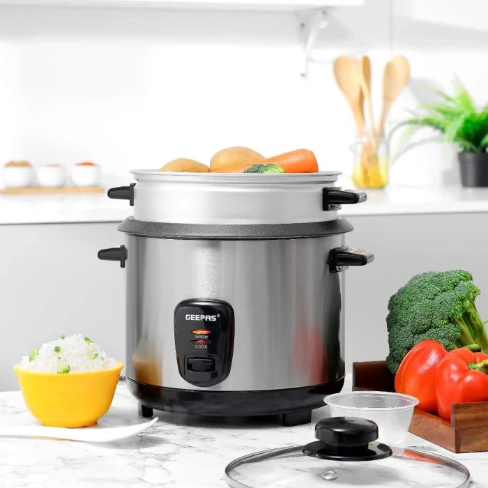 • 1.5L capacity, perfect for small to medium-sized families• Multi-function design – great for cooking rice, steaming vegetables, and keeping food warm• Automatic keep-warm function keeps meals hot and ready to serve• Durable stainless steel body gives it a long life and modern look• Non-stick coated inner pot makes it easy to clean and food comes off easily• One-touch operation makes cooking simple and easy• Energy-efficient heating cooks food evenly and uses less power• Cool-touch handles and body for safe use during cooking• Compact and lightweight design makes it easy to use every daySpecifications:• Brand: Geepas• Model: GRC35040• Type: Multi-Function Rice Cooker• Capacity: 1.5L• Power: 500W (Approx.)• Body Material: Stainless Steel• Inner Pot: Non-Stick Coating• Functions: Cook, Steam, Keep Warm• Operation: One-Touch Control• Indicator Lights: Cooking / Keep Warm• Lid Type: Stainless Steel• Color: Silver / Black• Suitable For: Rice, Vegetables, Soups, Dumplings• Dimensions: Compact Countertop Design