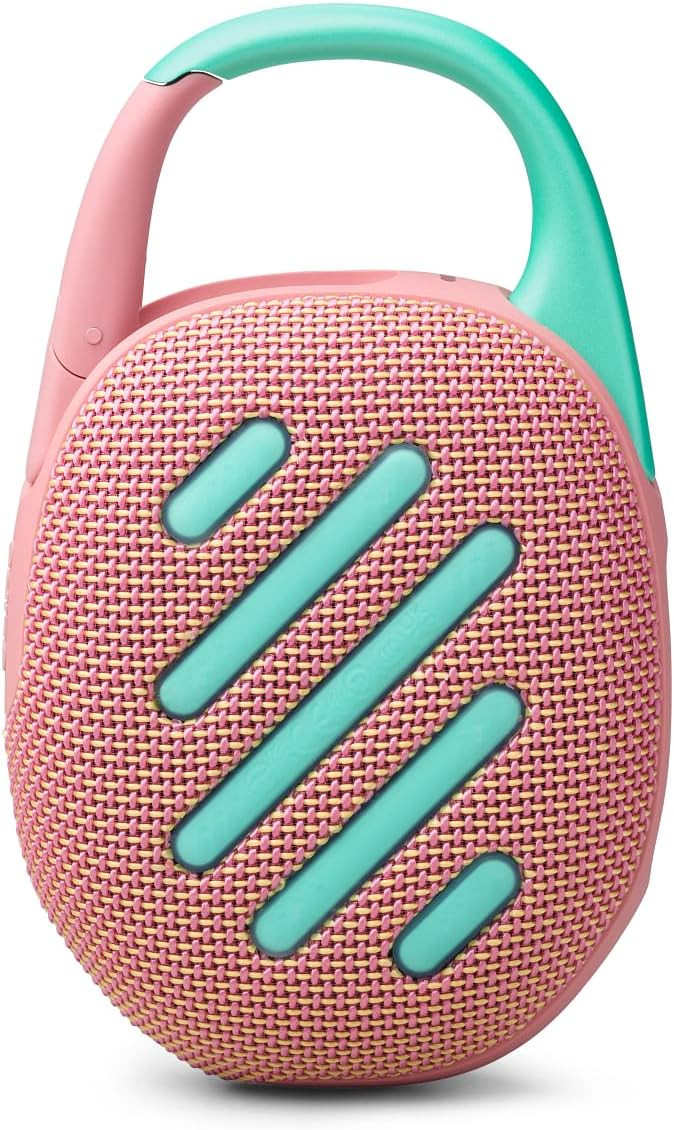 Take your music anywhere with the JBL Clip 5 Waterproof Bluetooth Speaker. Its ultra-portable design features a built-in carabiner, allowing you to clip it onto bags, belts, or bikes for convenient on-the-go listening. Despite its compact size, the speaker delivers JBL Original Pro Sound with deep bass and clear vocals.