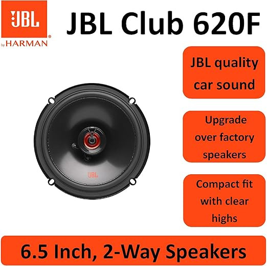 JBL Club 620F 2-Way Car Speaker Set by Harman Kardon (6.5 Inch / 16–17 cm) is designed to deliver clear, powerful, and balanced sound in a slim, flat-mount design. Part of the JBL Club Series, these speakers provide strong bass, detailed mids, and crisp highs, making them an excellent upgrade for factory or aftermarket car audio systems. With a no-grille, flat installation design, the Club 620F is ideal for OEM replacement applications where space is limited.