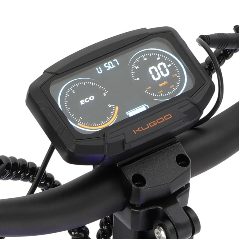The Kugoo F3 Plus 2025 Electric Scooter combines high performance, safety, and comfort for an exceptional riding experience. Equipped with a 1000W high-efficiency motor and a 48V 20.8Ah (998.4Wh) lithium battery, it delivers speeds up to 50 km/h and a range of up to 80 km per charge. Designed for both city commuting and off-road adventures, it balances power and control for smooth, responsive rides.