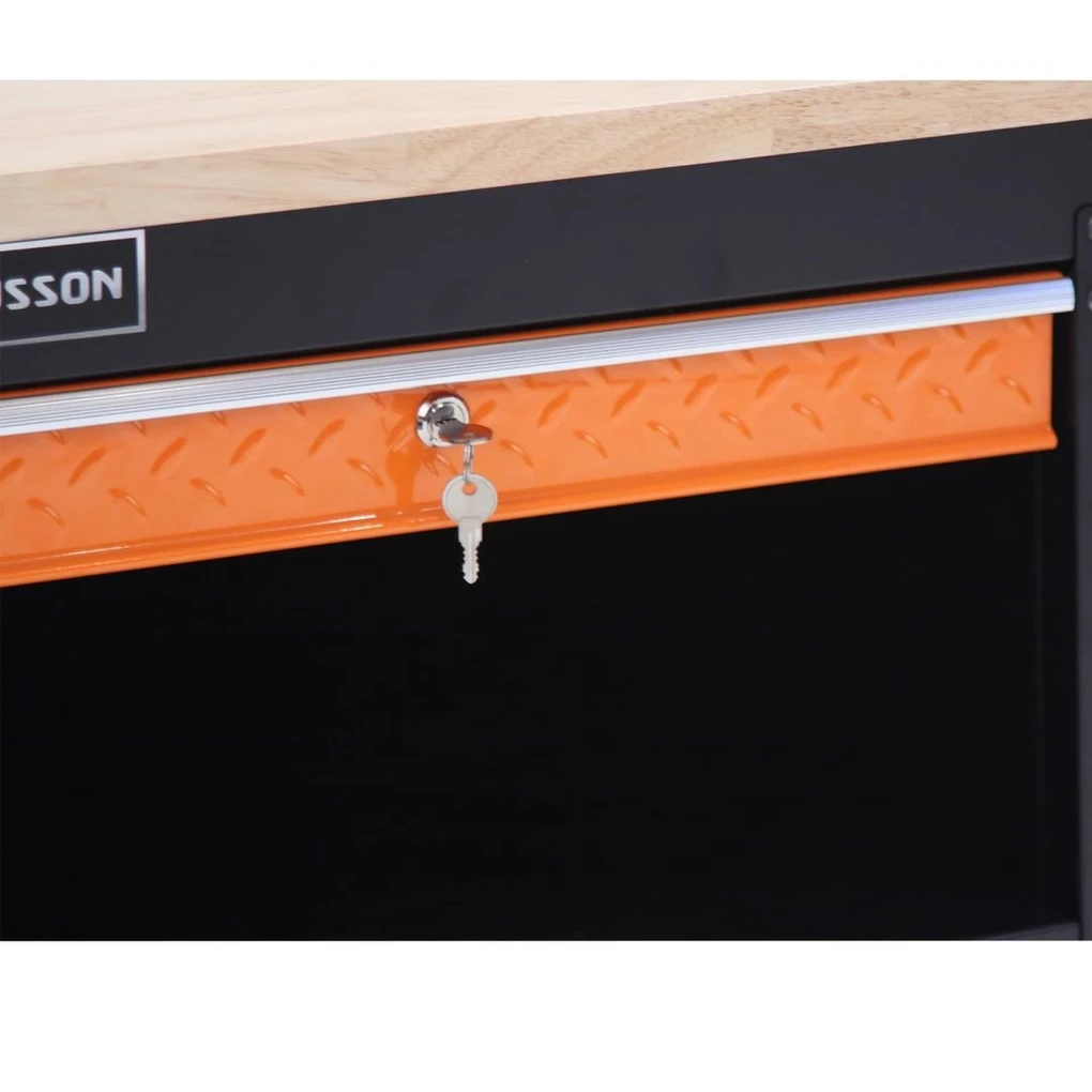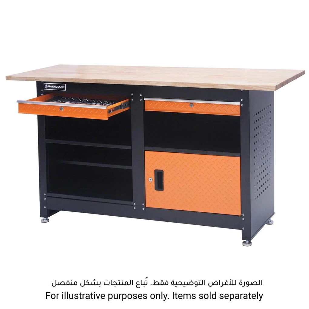 Upgrade your workspace with the Magnusson Steel Fixed Work Bench with Drawers, engineered for strength, durability, and functionality. Built with a solid hardwood worktop and powder-coated steel frame, this heavy-duty bench supports a total weight capacity of 177 kg, making it ideal for professional workshops, garages, and DIY setups.