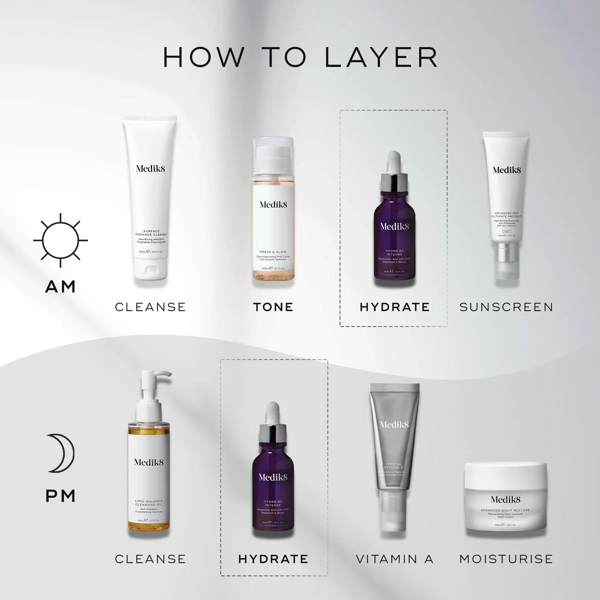 Medik8 Hydr8 B5 Serum is a lightweight, intensely hydrating facial serum designed to promote a plump, smooth and supple-looking complexion. Powered by Medik8’s signature hyaluronic acid technology, the formula delivers deep, long-lasting moisture to help minimise the look and feel of dryness without clogging pores.