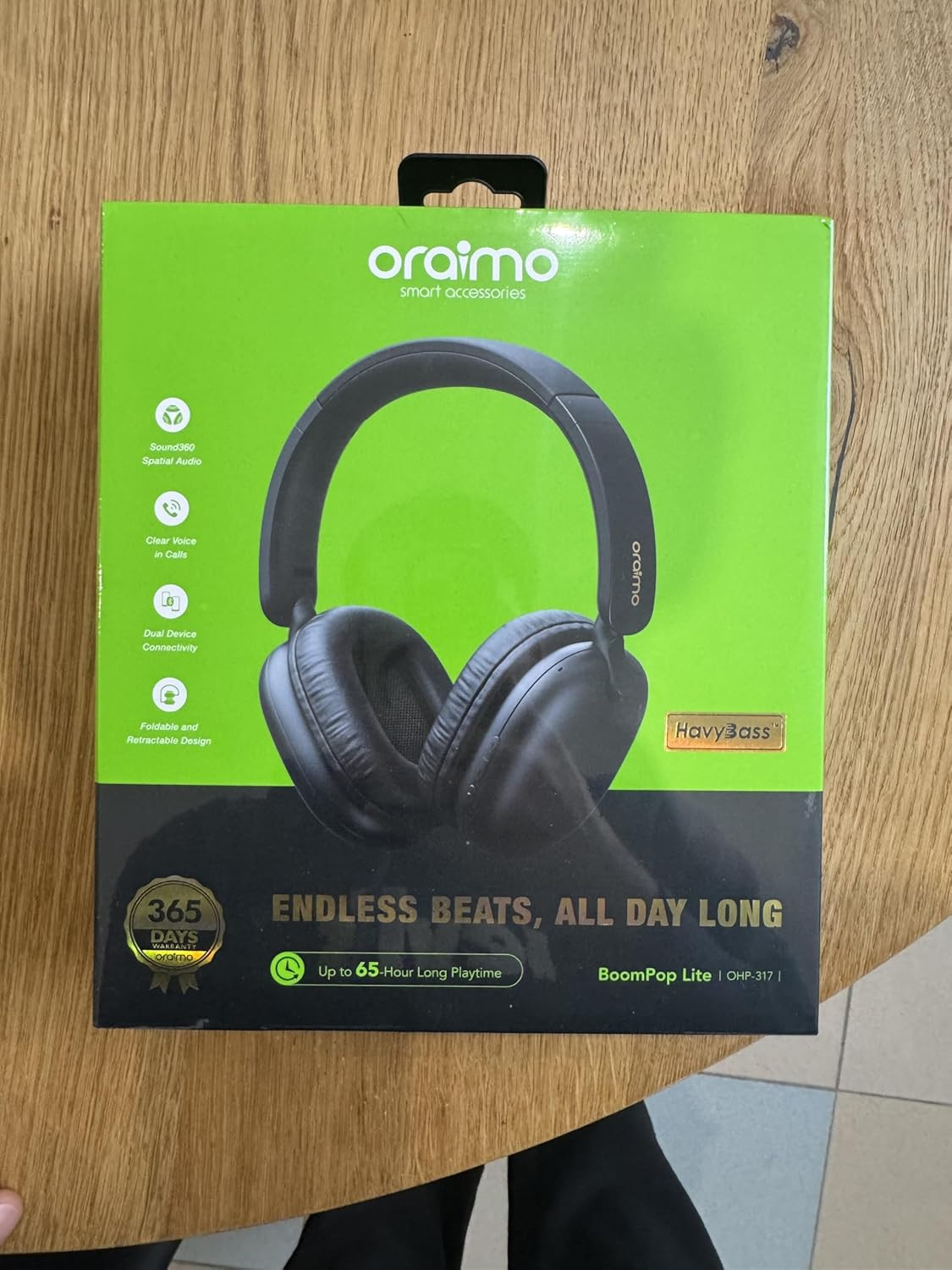Experience powerful sound and all-day comfort with Oraimo BoomPop Lite Over-Ear HavyBass Headphones. These wireless Bluetooth headphones deliver deep bass, crystal-clear audio, and a long-lasting battery perfect for music, calls, gaming, or workouts. Designed for durability and comfort, the over-ear fit ensures hours of listening without fatigue. Sleek and stylish in black, the BoomPop Lite combines premium audio performance with modern design.