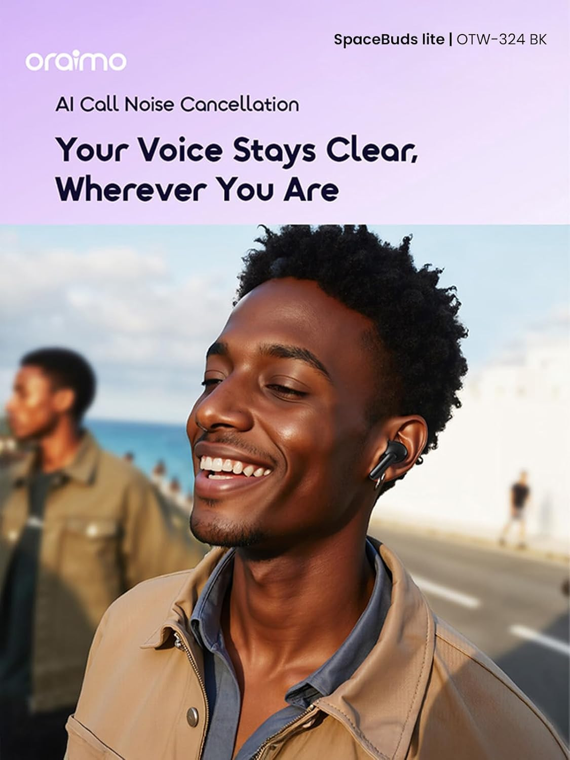 Elevate your listening experience with Oraimo OTW-324 SpaceBuds Lite True Wireless Earbuds. Engineered for comfort, performance, and convenience, these earbuds deliver immersive Sound360 spatial audio that brings music, calls, and videos to life. With 40-hour long playtime, quick charging, and a sleek Speed Black design, the SpaceBuds Lite are perfect for commuting, workouts, gaming, or everyday use. Enjoy a secure fit, advanced connectivity, and crystal-clear sound wherever you go.