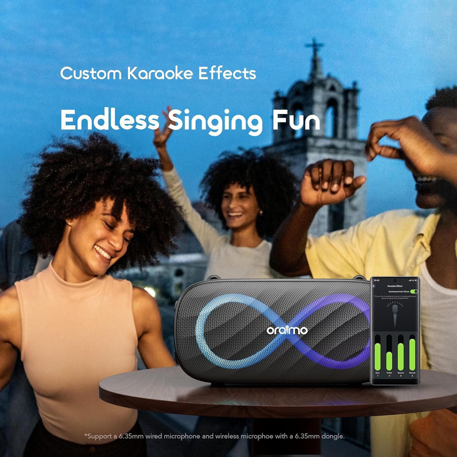 Enjoy powerful sound anywhere with the Oraimo SpaceBox Pro Portable Bluetooth Speaker. Designed for music lovers who want strong audio performance in a compact device, this wireless speaker delivers clear sound, deep bass, and vibrant lighting effects to enhance every listening experience. Whether you're hosting a party, relaxing at home, or spending time outdoors, the SpaceBox Pro provides reliable wireless connectivity and versatile playback options.