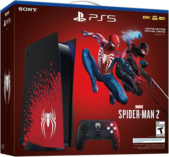 Get ready to dive into the world of gaming with the PlayStation®5 Console – Marvel’s Spider-Man 2 Limited Edition Bundle. This special edition console comes with unique Spider-Man designs and offers top-of-the-line gaming performance. It features ultra-fast load times, smooth gameplay, and amazing 4K visuals. Powered by a high-speed 1TB SSD and advanced AMD technology, it brings you a truly immersive gaming experience. The included DualSense wireless controller gives you haptic feedback and adaptive triggers for more precise control. This exclusive bundle is a must-have for collectors and Spider-Man fans.