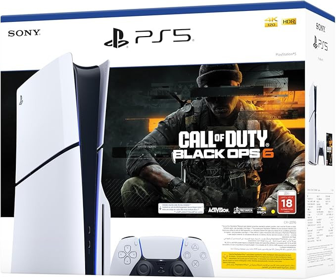 - PlayStation 5 Disc Slim Console with a modern, slim design- Call of Duty: Black Ops 6 game included in the bundle- Ultra-fast 1TB SSD for quick load times and smooth gameplay- Built-in Ultra HD Blu-ray disc drive for playing physical games and media- Supports up to 4K resolution for sharp and detailed visuals- DualSense wireless controller with haptic feedback and adaptive triggers- Ray tracing for realistic lighting and reflections- Tempest 3D AudioTech for an immersive in-game sound experience- Backward compatibility with most PS4 gamesSpecifications:- Model: PlayStation 5 Disc Slim Console- Bundle: Call of Duty: Black Ops 6- Version: UAE- Storage Capacity: 1TB SSD- Maximum Resolution: Up to 4K- Processor: AMD Ryzen Zen 2- Graphics Processor: AMD RDNA 2-based GPU- Disc Drive: Ultra HD Blu-ray- Ray Tracing: Supported- Audio Technology: Tempest 3D AudioTech- Connectivity: HDMI, USB-A, USB-C, Wi-Fi, Bluetooth- Controller: DualSense Wireless ControllerUsage:- Perfect for home gaming and entertainment- Ideal for playing both physical and digital PS5 and PS4 games- Supports online multiplayer gaming through the PlayStation Network- Works well with 4K TVs and monitors for smooth, detailed gameplay- Also great for watching Blu-ray movies and using streaming apps