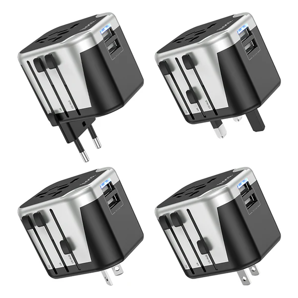 Material: Flame-retardant PC material for enhanced safety and durability. AC Output: Supports 110V 230V wide voltage range. USB Output: Dual USB-A ports (5V / 2.4A) with a total output of 5V / 2.4A. Compatibility: Universal pin design compatible with EU UK US and AUS standards. Dimensions Weight: Compact size 63 × 54 × 53 mm lightweight at 117 g for travel convenience.