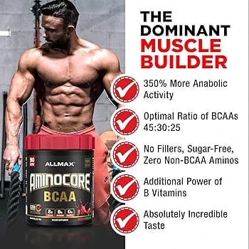 Fuel your muscles with ALLMAX Nutrition AMINOCORE BCAA Powder a premium intra and post-workout recovery formula. Each serving delivers powerful BCAAs (Leucine Isoleucine Valine) to boost muscle growth endurance and recovery. With a refreshing watermelon flavor this gluten-free formula is perfect for athletes and fitness enthusiasts seeking maximum results. Key Features: High-Potency BCAA Formula Supports muscle repair protein synthesis Intra Post-Workout Recovery Reduces fatigue enhances endurance Gluten-Free Clean Formula Perfect for all fitness lifestyles Delicious Watermelon Flavor Refreshing taste mixes instantly Performance Support Helps prevent muscle breakdown during training Large 33.33 oz Container Long-lasting supply for consistent results Specifications: Brand: ALLMAX Nutrition Product Name: AMINOCORE BCAA Powder Form: Powder Flavor: Watermelon Weight/Size: 33.33 oz (0.29 oz per serving) Key Ingredients: BCAAs: Leucine Isoleucine Valine Added Vitamins for energy metabolism (if applicable) Benefits: Muscle Growth Recovery Endurance Reduced Fatigue Diet Type: Gluten-Free Recommended Use: Mix with water during or after training