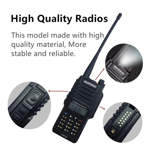 Built with an IP67 waterproof and dustproof design, the UV-9R Plus withstands harsh weather and wet conditions, ensuring uninterrupted performance. It features 128 storage channels, an easy-to-read display, and a 2200mAh rechargeable battery for extended operating time. Compact yet powerful, it is suited for both professional and recreational applications.