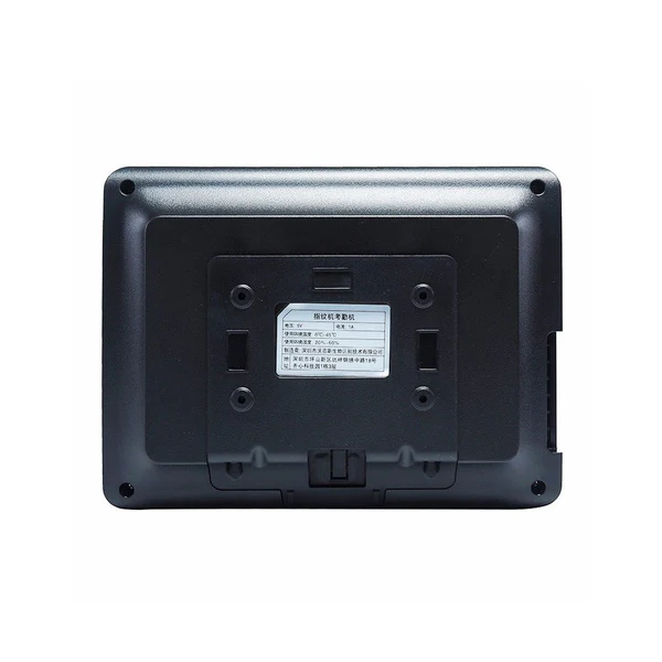 CRONY A7-T Fingerprint Attendance Fingerprint capacity: 3000 pieces Number of users: 3000 Record capacity: 200000 Collector: High precision total reflection optical collector Identification method: Fingerprint password Contrast mode: 1:N 1:1 Fingerprint recognition speed: ≤0.5 seconds False positive rate (FAR): ≤0.0001% Rejection rate (FRR): ≤0.01% Communication method: USB 2.0 driver-free TCP/IP (WAN/LAN independent switching) WAN communication support: Yes CPU: AT91SAM9G25 Display: 4.0" color screen Keypad: 44 physical keys Report output: U-disk export EXCEL report Working temperature: 0-60 degrees Celsius Working humidity: 20%-80% Machine size: 200×150×40mm Power supply: DC5V1A