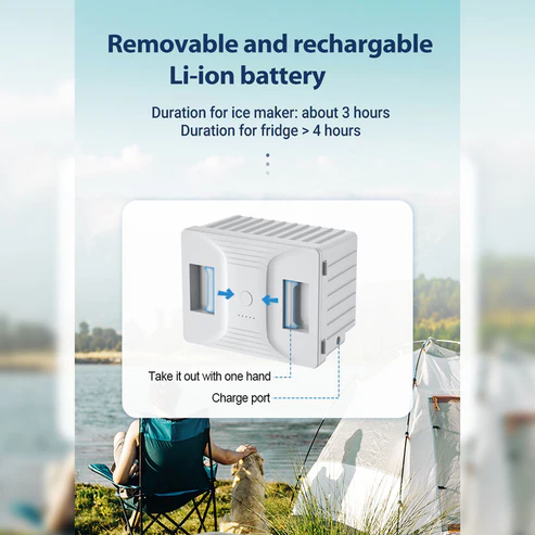 Model : B35IM Rated Voltage : DC 12V/24V; AC 100~240V Power Consumption : 75W Power Source : AC/DC Capacity : 38L Noise Level :  50dB Temperature Range : -20C to 20C Product Size : 73x41x48CM Net Weight : 19.85KG Gross Weight : 23.20KG Additional Features : LED Control Panel 7 Ice Cubes Per Cycle Convenient Handle Wheels for Easy Moving Built-in Foldable Tray Bullet Shape Ice Car Battery Protection