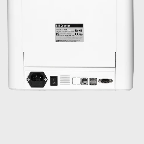 Model : AL-950 Counting Speed : 1000pcs/min (MDCSDC MODE) 1200pcs/min (CTN MODE) Hopper Capacity : 500pcs Stacker Capacity : 200pcs Reject Capacity : 50pcs Detection Technology : UV Light Magnetic Detection IR Light Detection Power Supply : AC 100-240V Power Consumption : 80W Interface : USB RS-232 RJ-11 Product Size : 279x250x247MM Weight : 11KG 3 Months Free Software Update Additional Features : Built-in TFT Display Dual USB Ports Auto Start-Stop 3 Modes of Operation Built-in Reject pocket Currency Customization