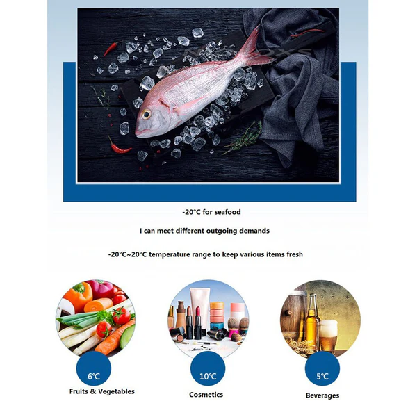 Crony C75 Car Refrigerator 75l  Dc Ac Car Cooler Portable Compressor Small Refrigerator Model :   C75 Rated Voltage :   DC 12V/24V; AC 110~240V Power Consumption : 80W Power Source :  AC/DC Capacity :    63.8L Noise Level :    <45dB Temperature Range : -20C to 20C Product Size :  65x37.5x67.2CM Net Weight :   17.5KG Gross Weight :  20KG Additional Features : LED Control Panel App-Connectivity USB Power Outlet Dual Door Open Car Battery Protection