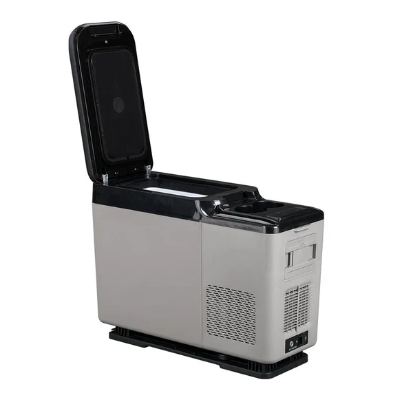 Model : CF15 With battery Rated Voltage : DC 12V/24V; AC 100~240V Power Consumption : 45W Power Source : AC/DC Capacity : 12.7L Noise Level : <45dB Temperature Range : -20C to 20C Battery Capacity : 15600mAh Product Size : 53.8x19x39CM Net Weight : 8.9KG Gross Weight : 10.6KG Additional Features : Cup Holder LED Control Panel Dual USB Power Outlet Dual Power Options App-Connectivity Detachable Battery Car Battery Protection