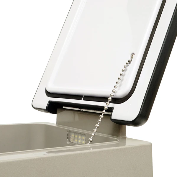 Model: CF35 Rated Voltage : DC 12V/24V; AC 100-240V Power Consumption : 60W Power Source : AC/DC Capacity: 35L Noise Level : s45dB Temperature Range : -20C to 20C Product Size : 69x34.6x38.2CM Net Weight : 12.1KG Gross Weight : 14.8KG Additional Features : Digital Display Car Battery Protection LED Interior light Wire storage basket Heavy duty handle Dual zone cooling Protective foot pad