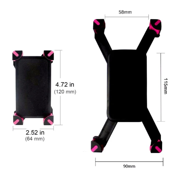 CN-M365 Mobile Phone Stand Mobile phone holder used on bicycle Universal Bike Bicycle Mobile Phone Holder Handlebar Clip Mounting Bracket for iPhone Samsung Cellphone GPS features: Works universally for most bikes easy to install no tools needed. Simple and secure lock quickly and easily mount or dismount your device Quadrangular support protections. NO STRAP NO GRIP to connect your device to the holder conveniently without an annoying strap to avoid pressing the volume key and power key frequently Free your hand make sure you have a pleasure trip. Specification: Product Name: Universal Adjustable Bike Mount Material: ABS Color: Black Pink $ Black (Please leave messages in the order if you have color requirements otherwise we will send the color randomly) Size: 120x64x50mm Weight: about 120g Suitable for device width: 58-92mm thickness: 6-12mm Suitable for handlebar diameter: 18-30mm Package included: 1 x Universal Bike Mount (Not Include the Phone)