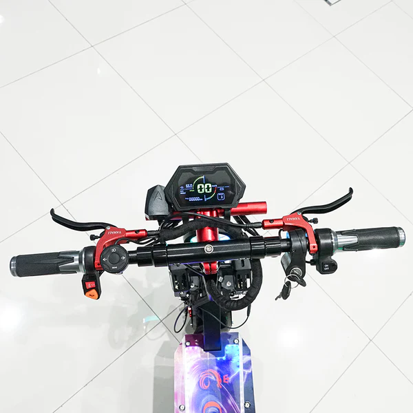 Note: When using please turn on the small key above the battery switch Model : DK-11 Motor : 2800Wx2 Speed : 45KM/H Battery: 60V/13AH Range: 25-40KM Charging Time : 6-8H Brake(Front/Rear): Disc/Disc Suspension: Front/Rear Max Loading Weight : 200KG Frame Material : Aluminum Alloy Carton Size: 130x28x64CM G.W./N.W: 45KG/40KG Warranty: 1 Year Warranty for Motor Additional Features: Triple LED Headlamp USB Charging Port LED Base LCD Display LED Remote Control 11 inch Tires Scooter Front Bag Mobile Phone Holder Water Bottle Holder