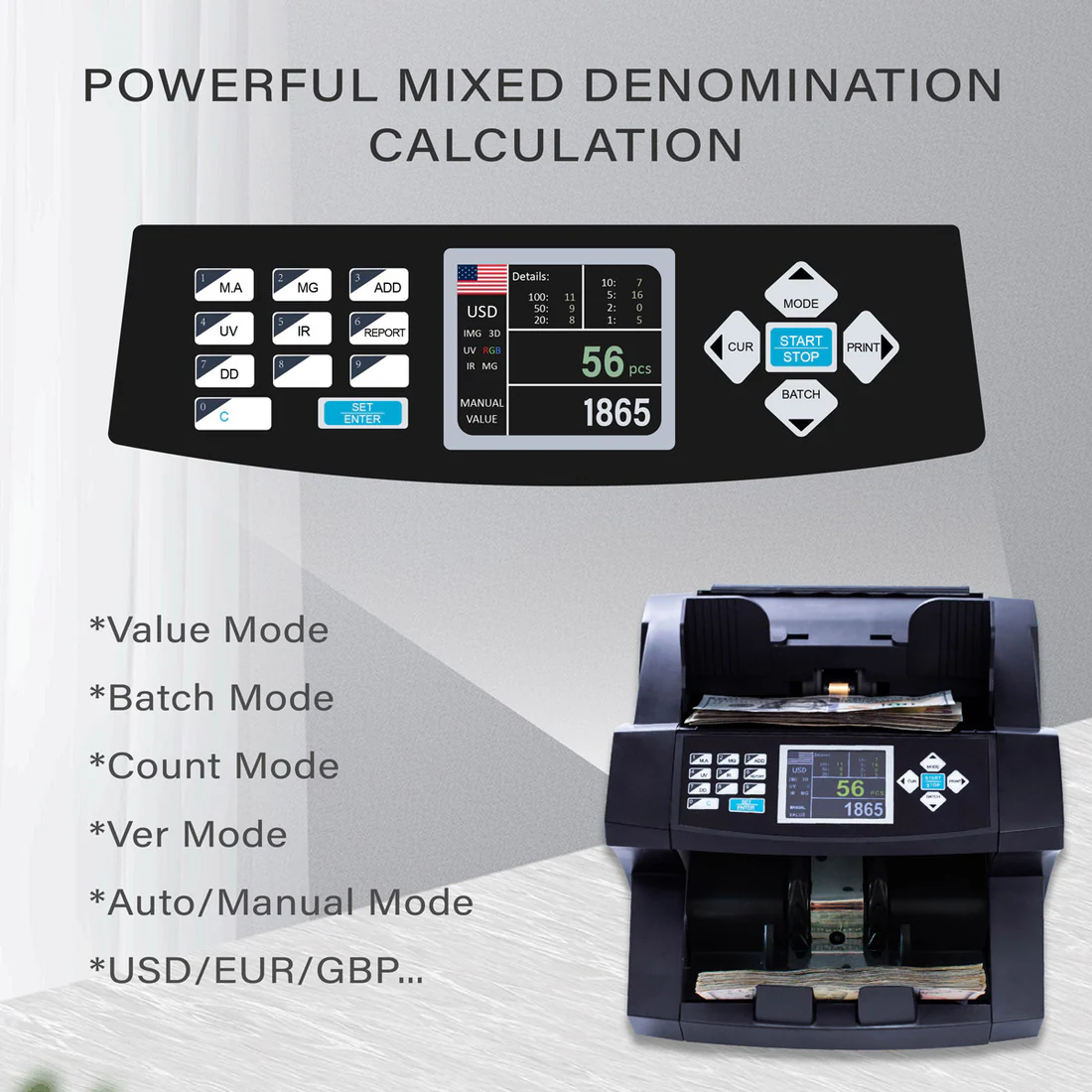 CRONY H-8600 Mixed Denomination Bill Counter High-Speed Banknote Counting Machine with 3 Speed Modes LCD Display for Office Store Bank Use Money Counter