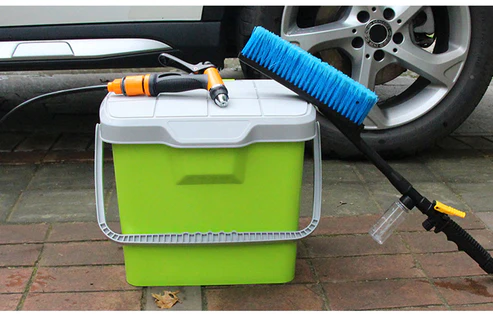 Description Quality PP Plastic and metal material. Tank Capacity : 16 Ltr. Power Source : 12V DC Car Cigarette lighter connector. 40Watts Motor powered diaphragm pump. Working Pressure 2.0-6.0Kg./cm2. Highlights Well constructed bristles aid in thorough cleaning Innovatively designed handle facilitates efficient and firm grasp Supports a massive 8 gallons tank capacity Streamlines an effective 40-watt diaphragm motor pump Overview Compact versatile robust - the K 2.360 with wheels is ideal for occasional use around the house. This practical high-pressure cleaner is designed for easy transport and mobility. Suitable e.g. for cleaning cars garden furniture or patios. An impact-resistant recyclable plastic casing prevents dirt particles from damaging the motor and pump. A safety valve prevents pressure overload. A pressure switch control switches the motor on and off when the trigger gun is pressed and released. High-performance machine with high-quality N-Cor pump. A detergent injector system supplies detergent to the area being cleaned also at low pressure. A large on/off switch smooth-running wheels on-board practical accessory storage for lances and an ergonomically designed trigger gun are further features of the K 2.360.